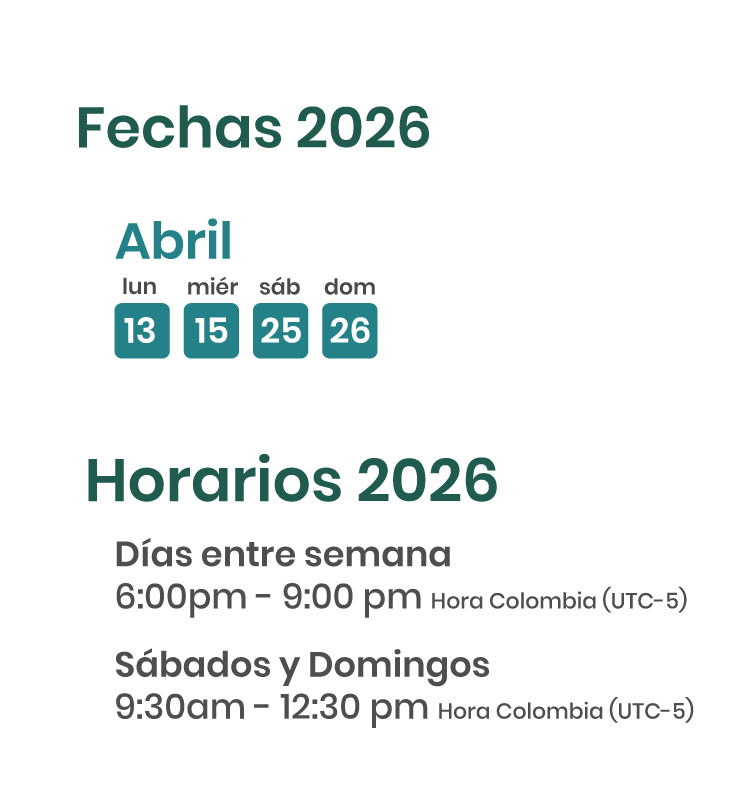 Es un curso presencial con opción virtual vía Zoom. Si estás fuera de Bogotá puedes hacerlo virtual, pero no es un curso pregrabado. Es en vivo. Queremos que estés en clase, que puedas hacer preguntas y que podamos compartir y estudiar juntos. Si no logras asistir a una de las clases la podemos grabar para ti pero dicha grabación estará disponible máximo por 72 horas. .