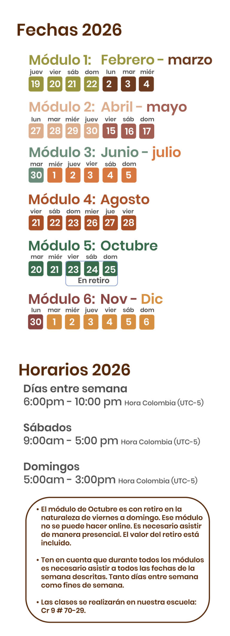 Debes hacer al menos 1 clase a la semana como alumno. Un buen alumno siempre será un excelente profesor. Además, es la mejor manera de integrar lo que aprendas en tu semana de formación..